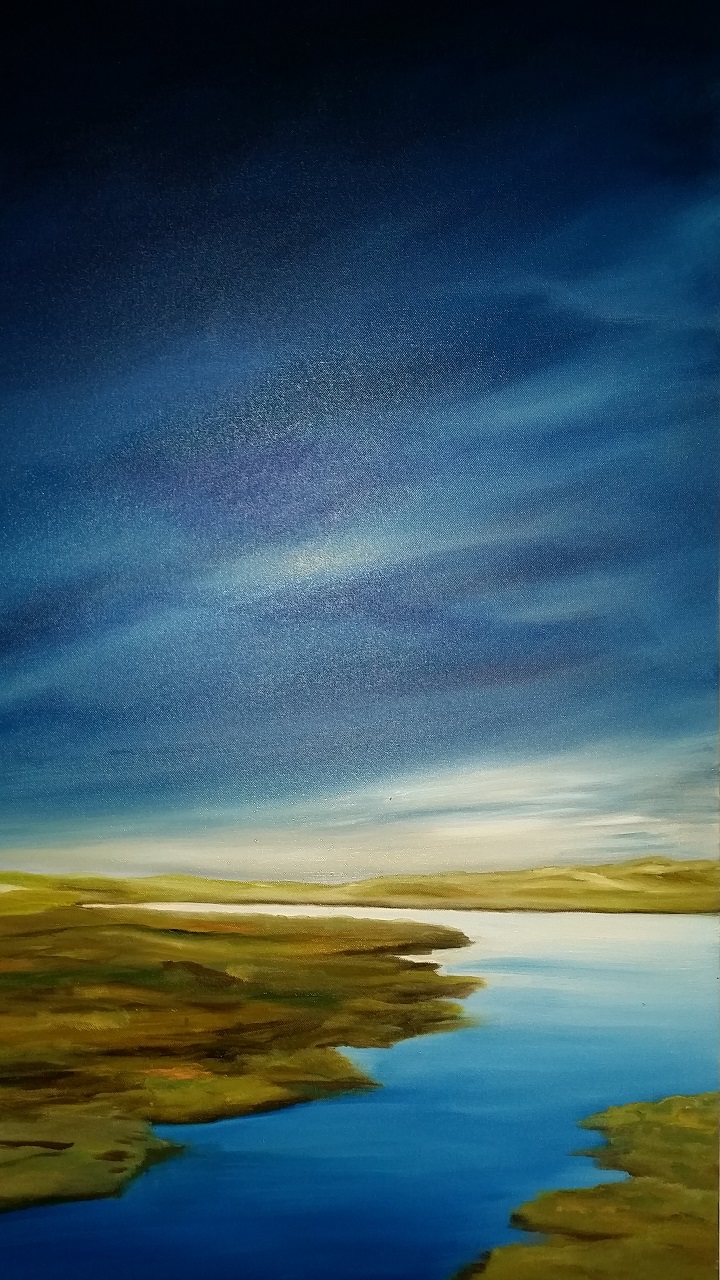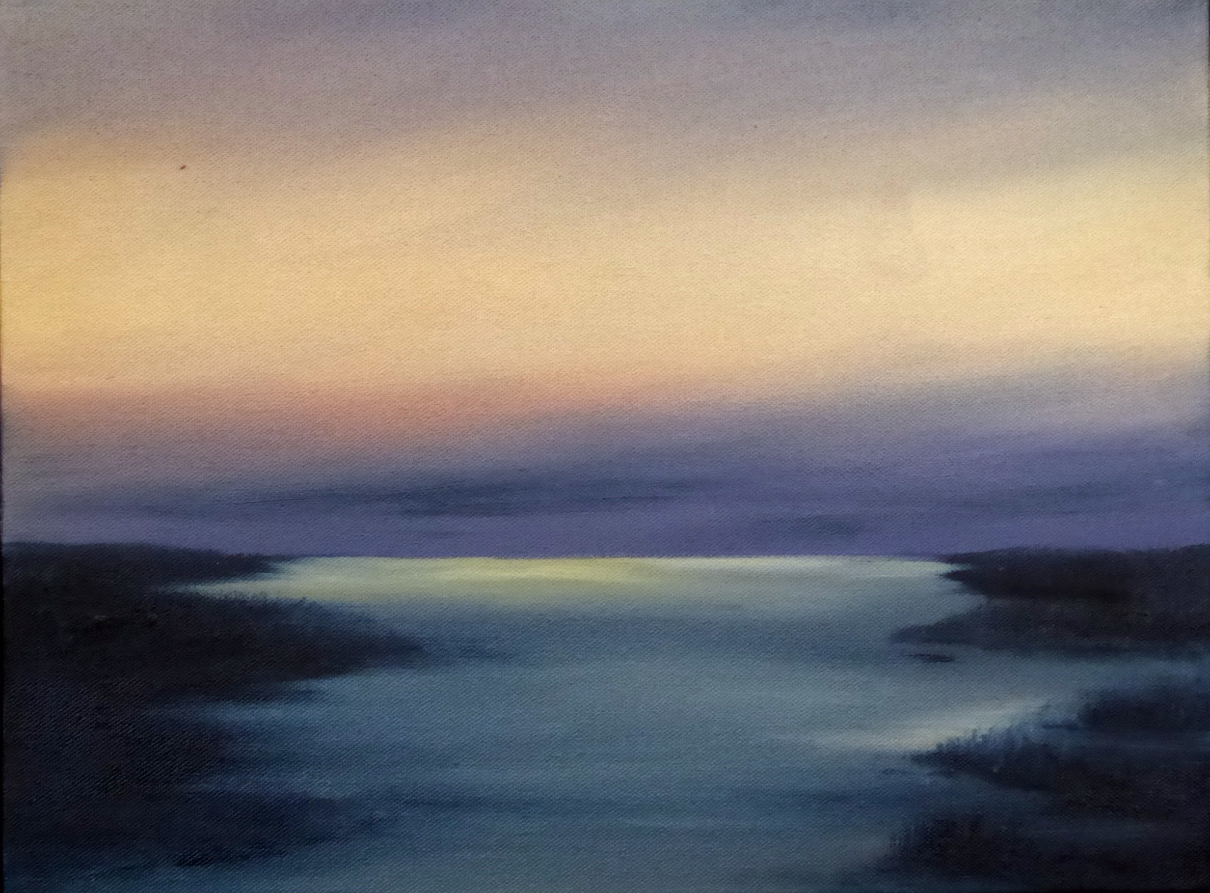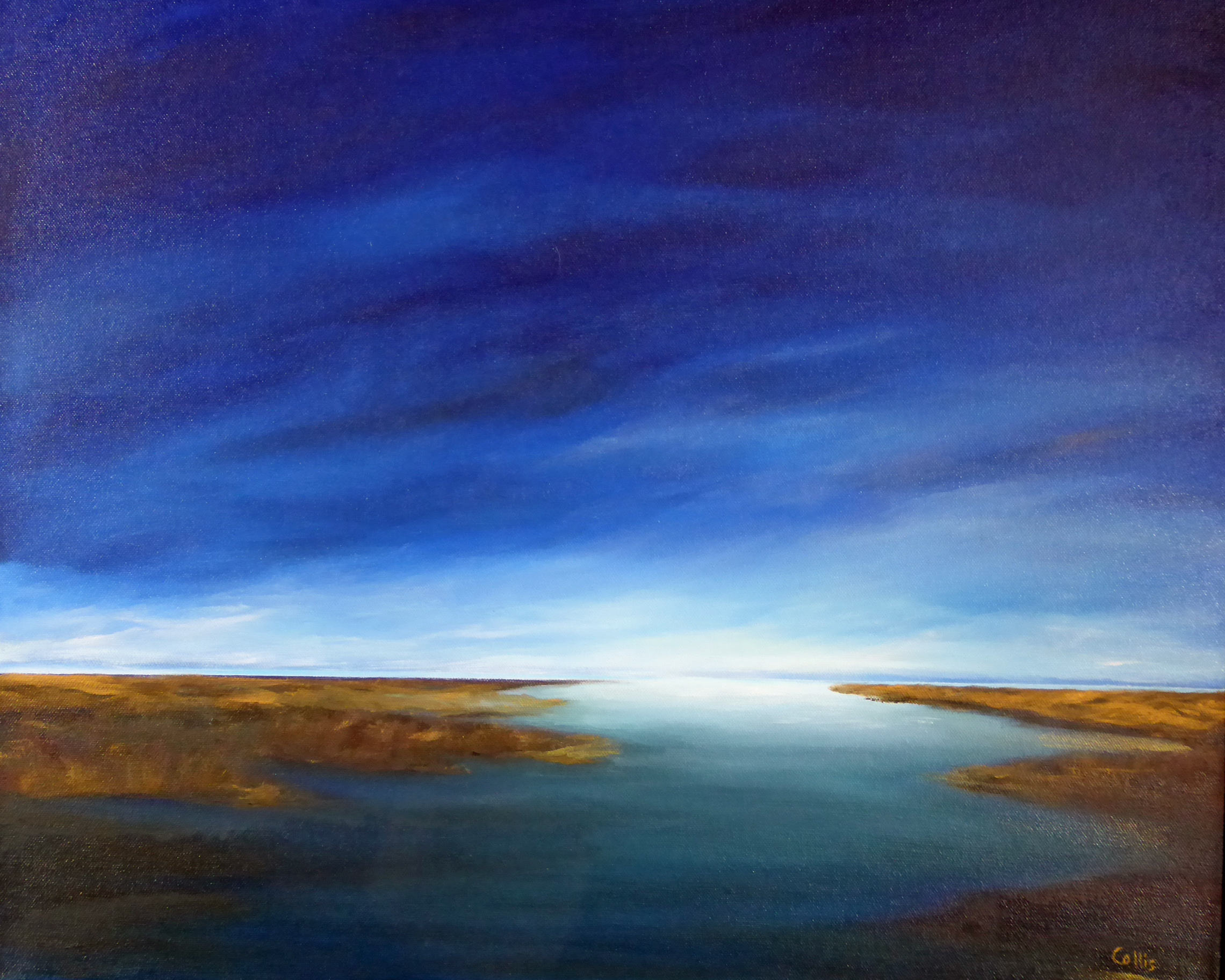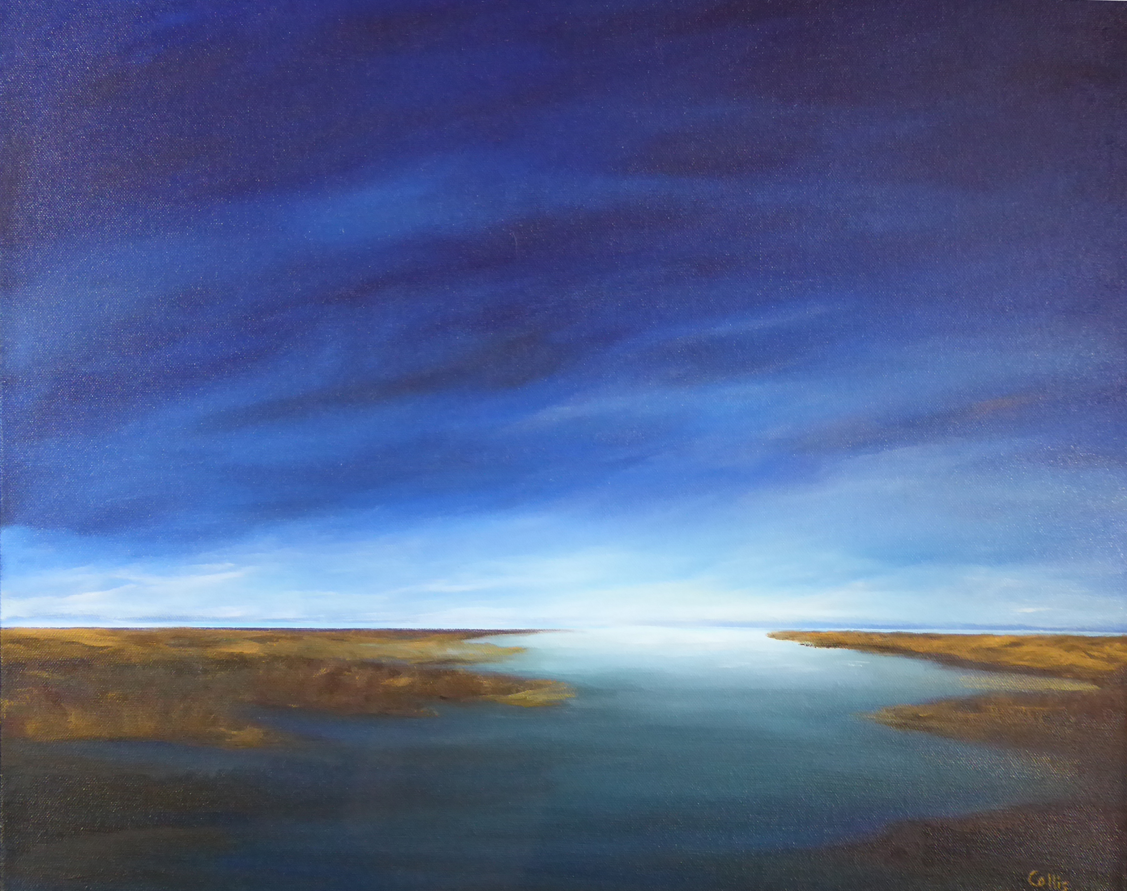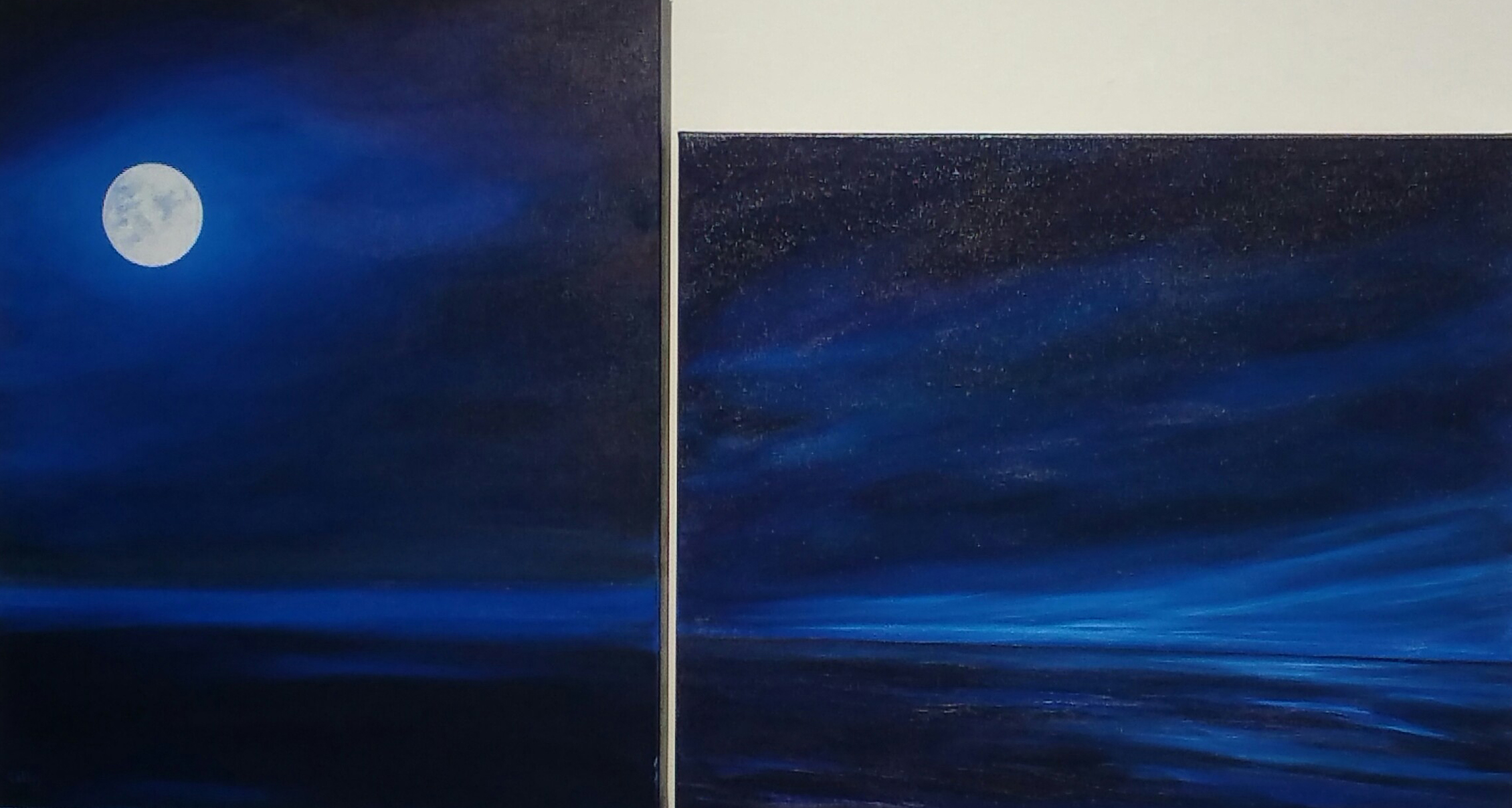 Oil Paintings Both Sides Now, 40 x90 triptych “Beyond” 16×20 oil “moving On” 30×40 oil “Drifting Out” 16×20 oil “imminent” 20×24 oil
