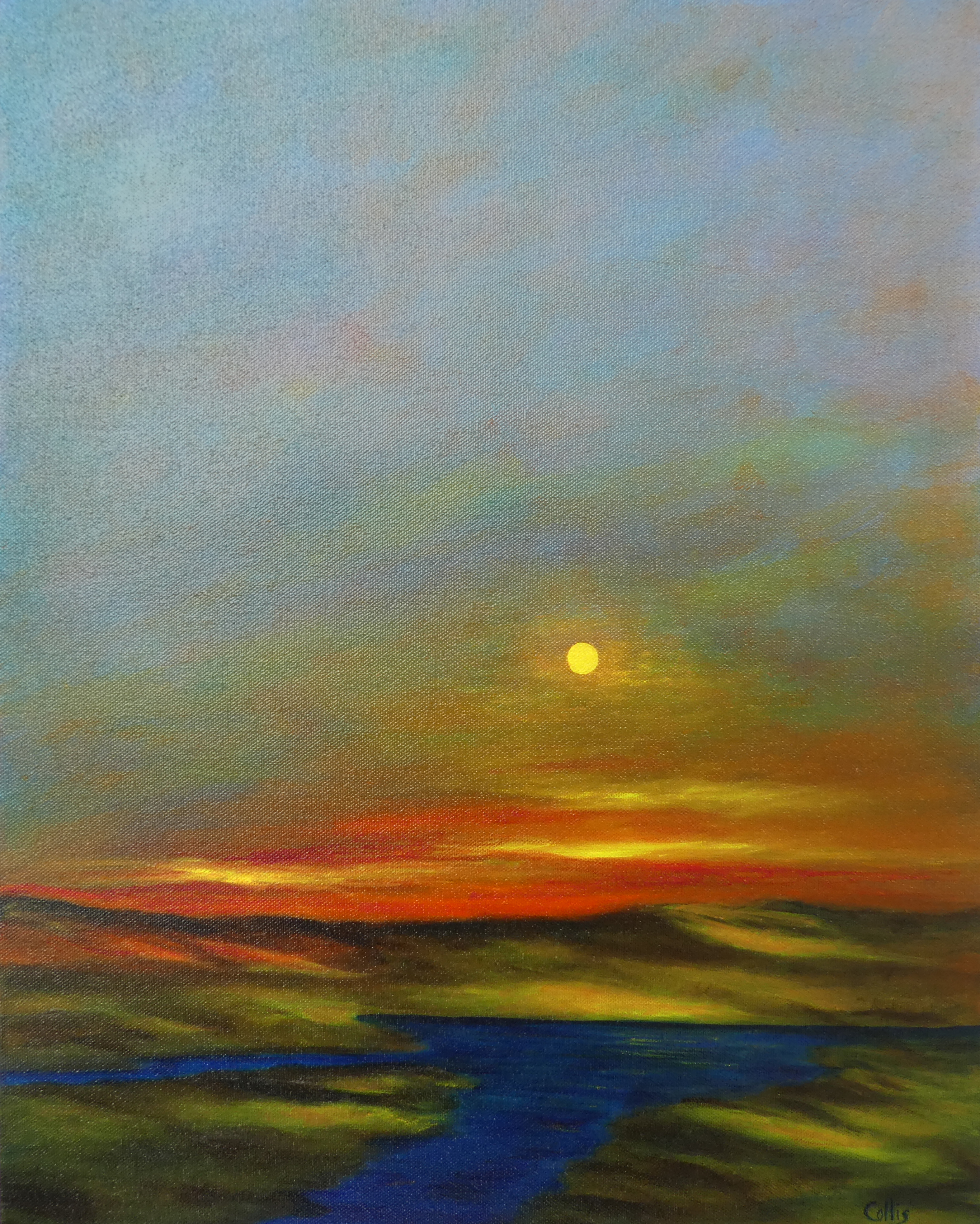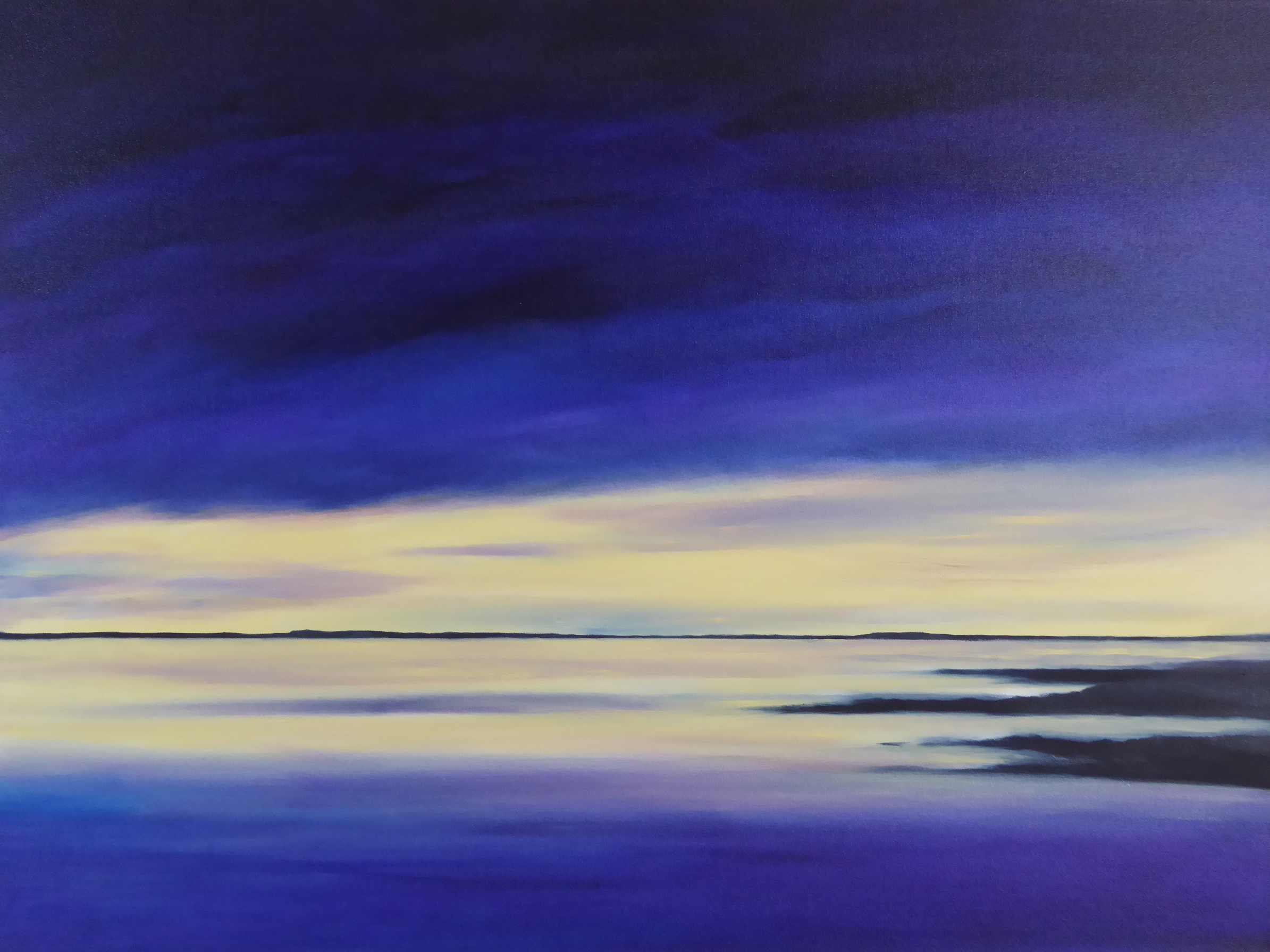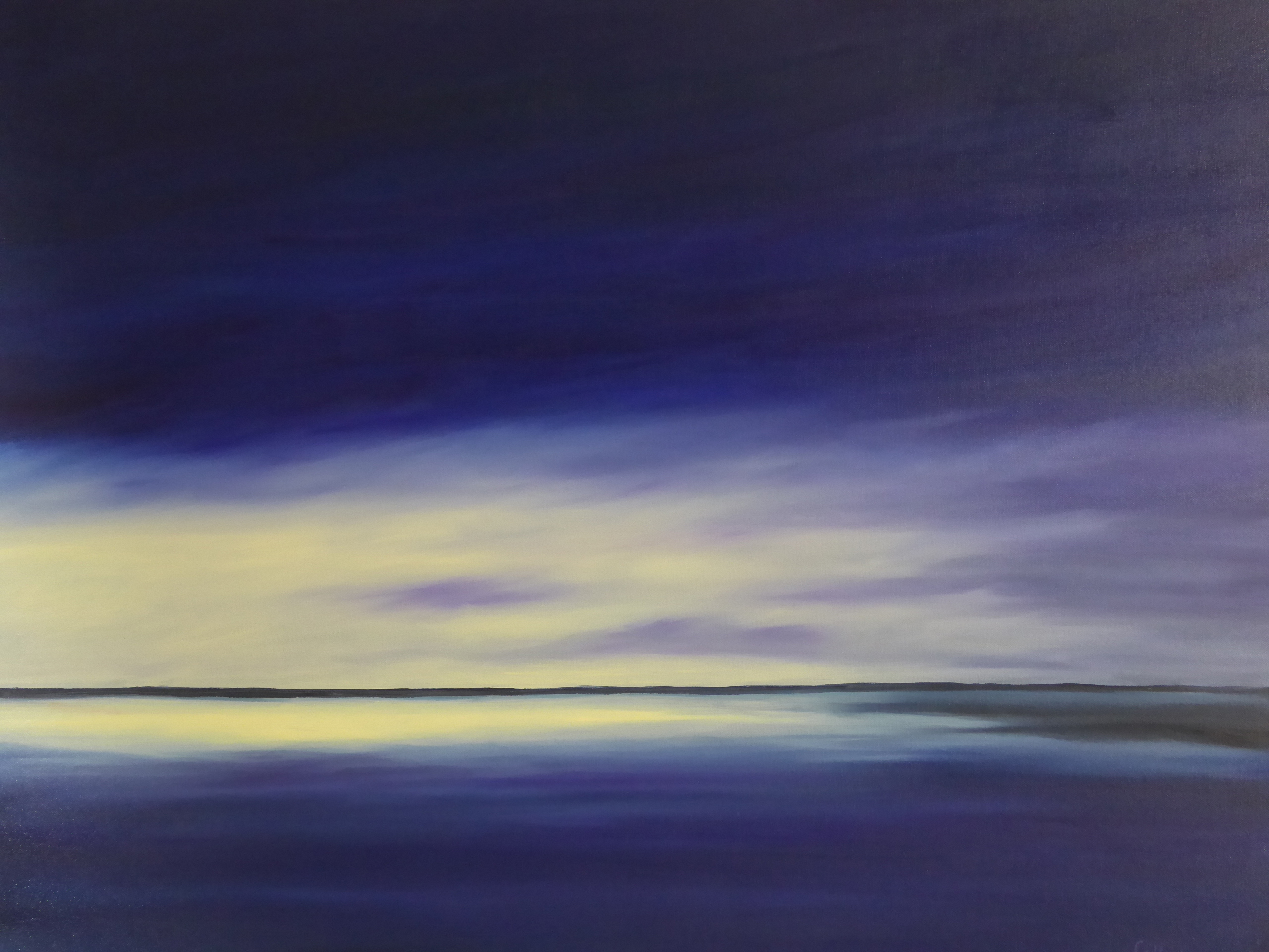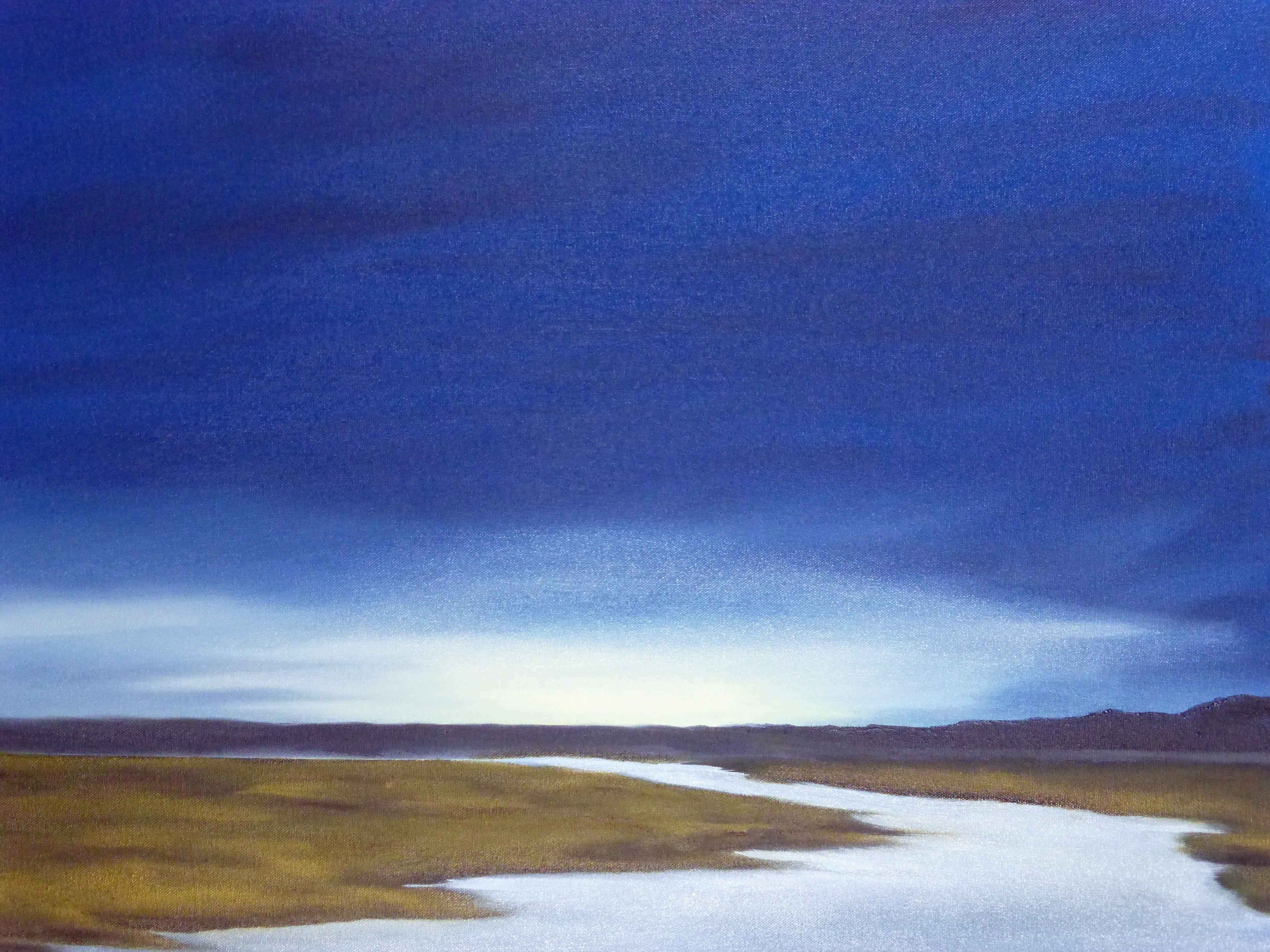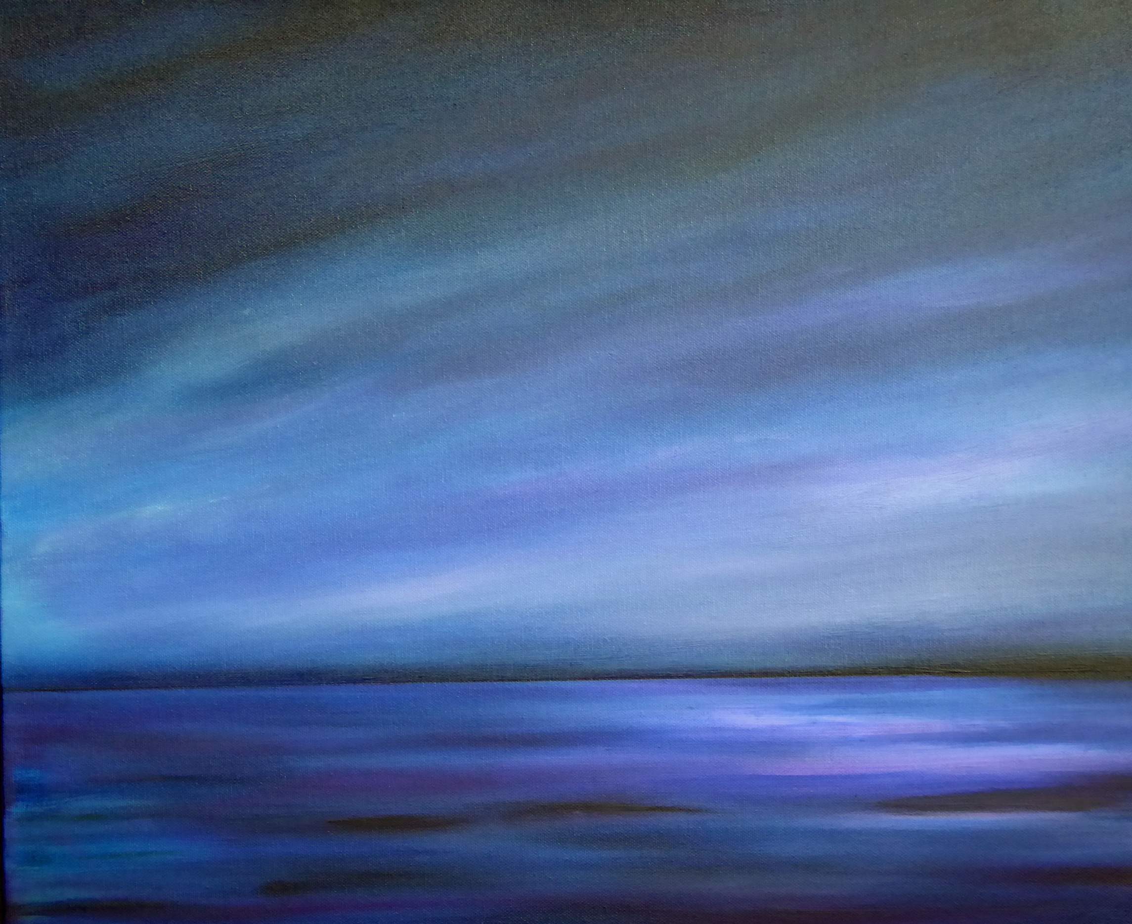 Oil Paintings Both Sides Now, 40 x90 triptych “Beyond” 16×20 oil “moving On” 30×40 oil “Drifting Out” 16×20 oil “imminent” 20×24 oil
