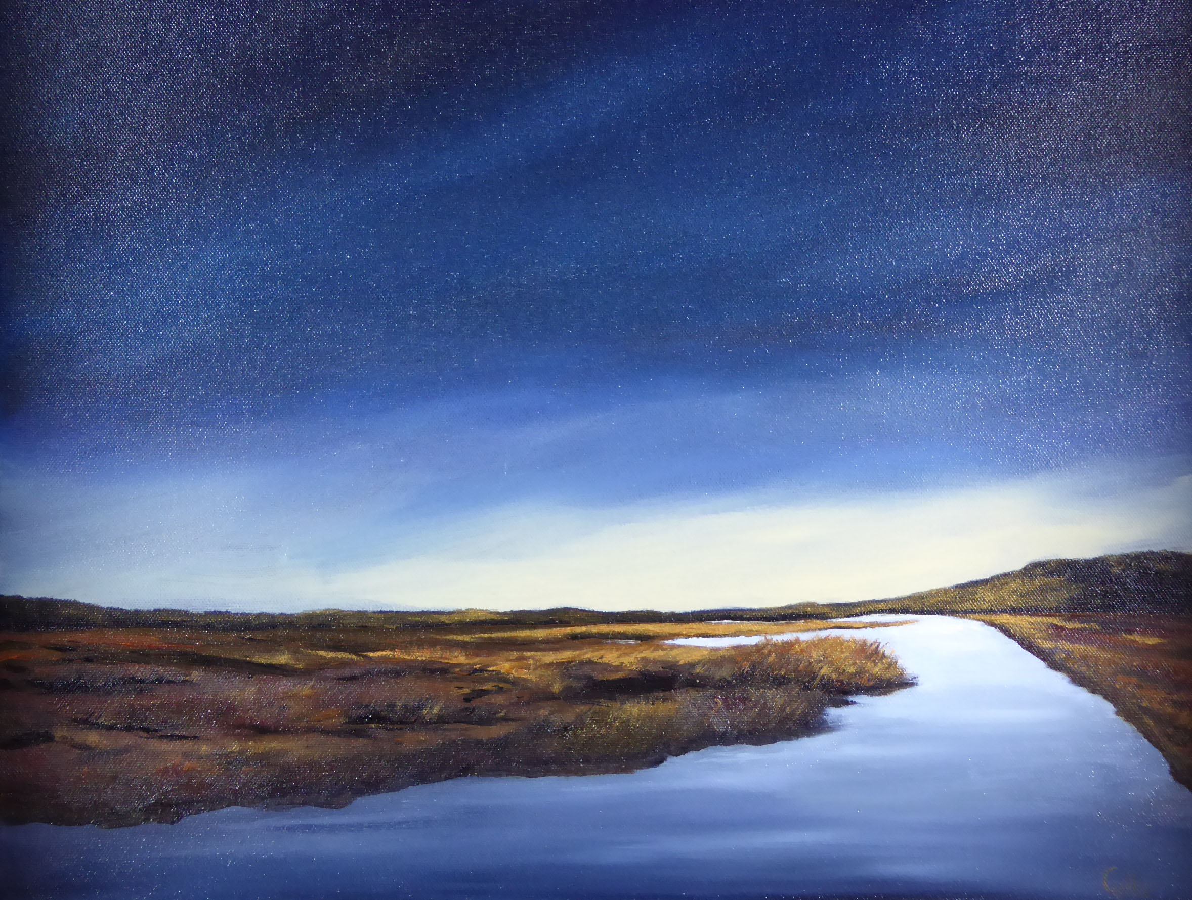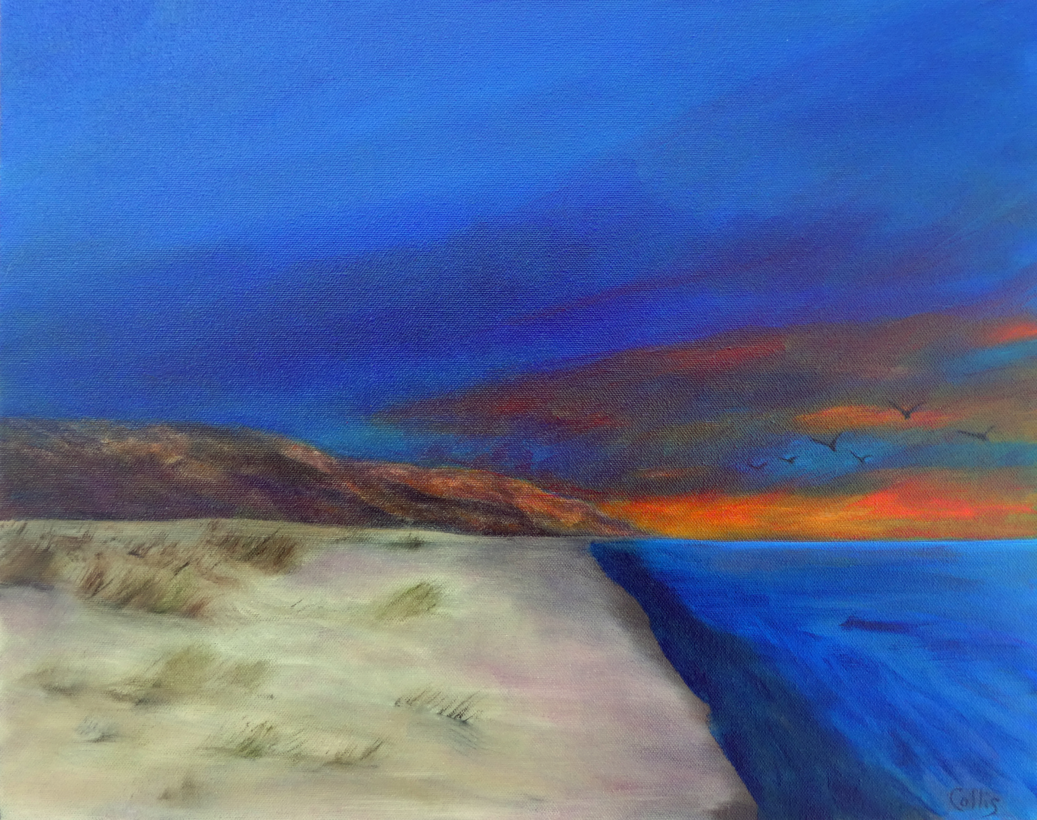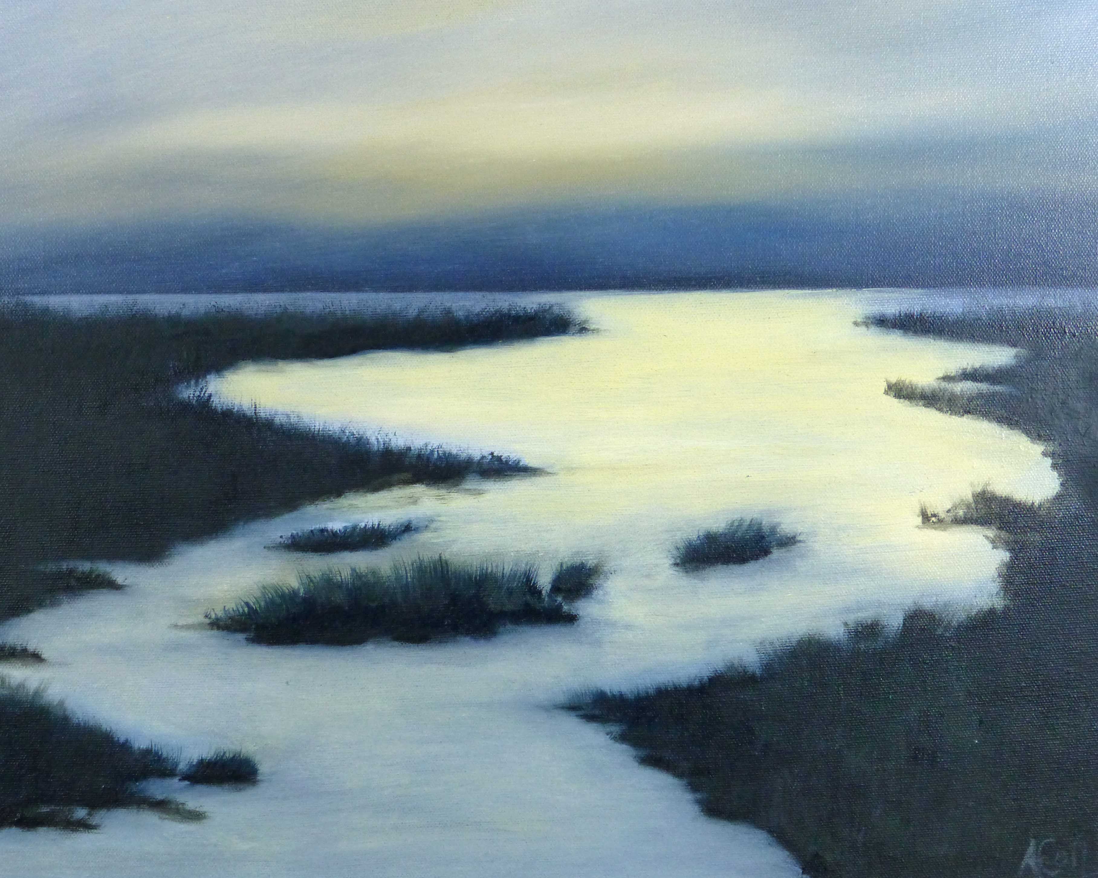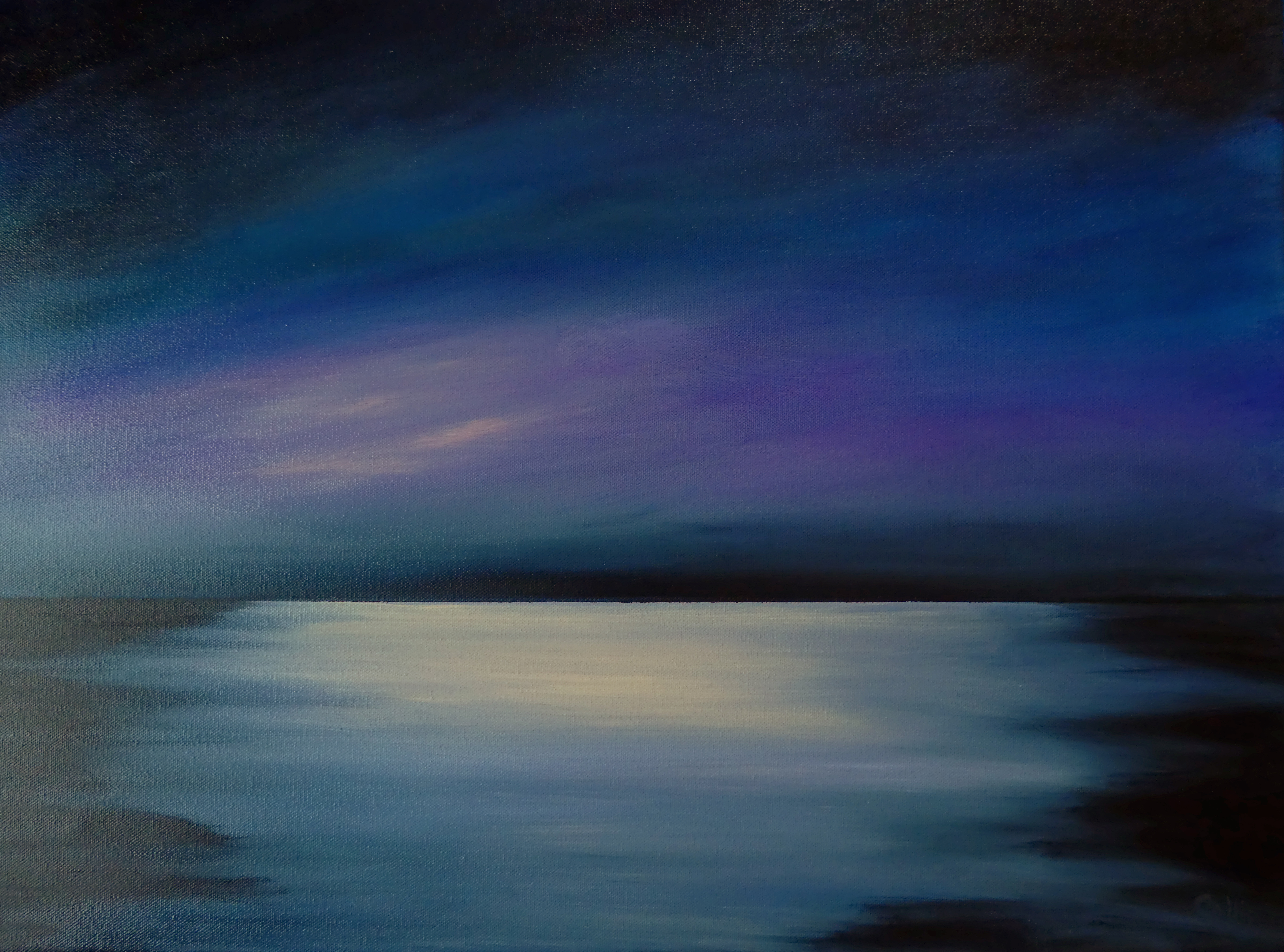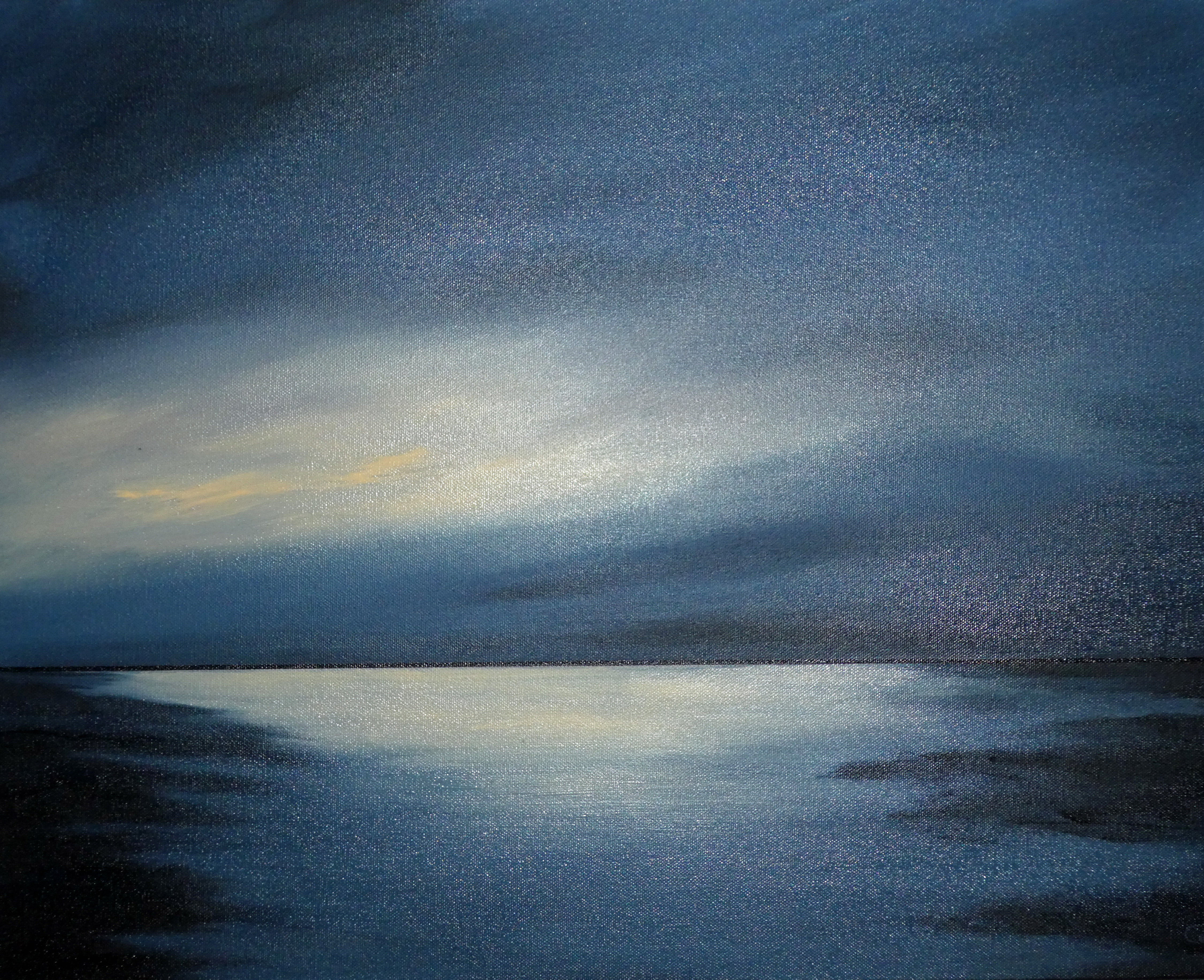 Oil Paintings Both Sides Now, 40 x90 triptych “Beyond” 16×20 oil “moving On” 30×40 oil “Drifting Out” 16×20 oil “imminent” 20×24 oil