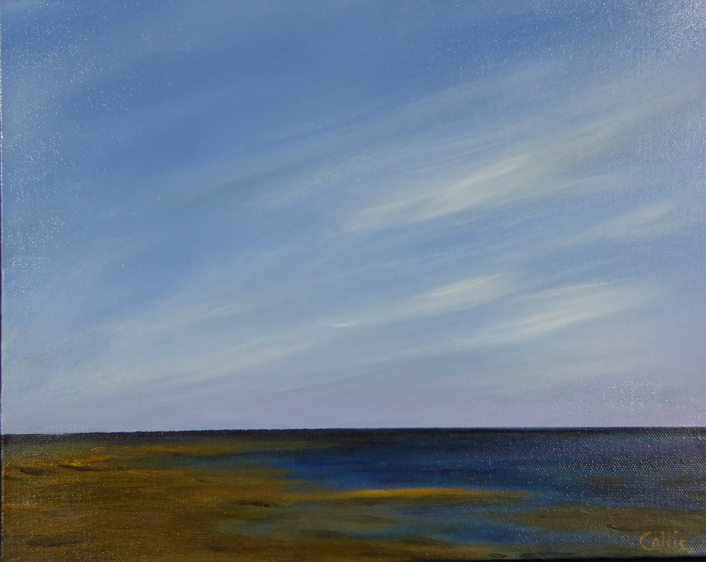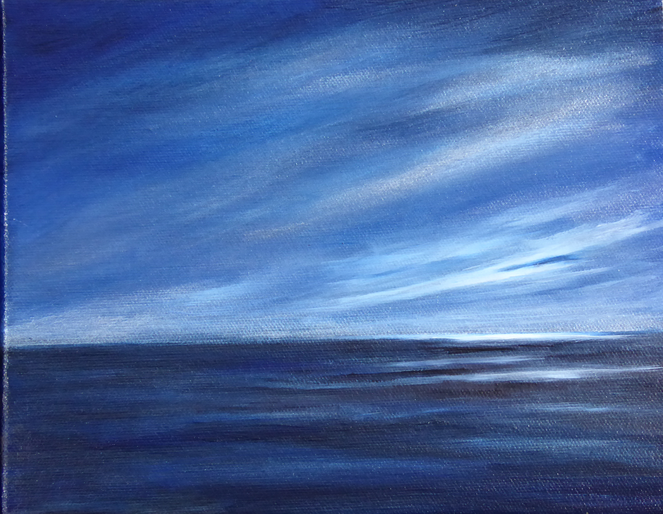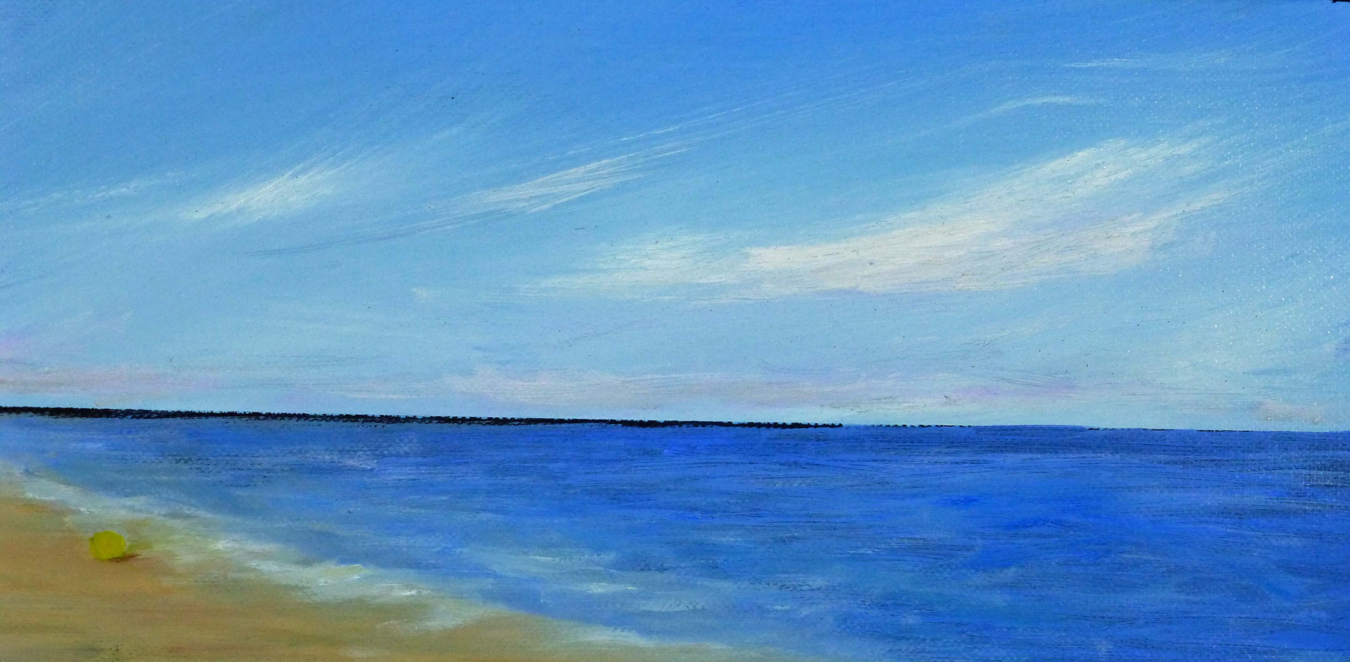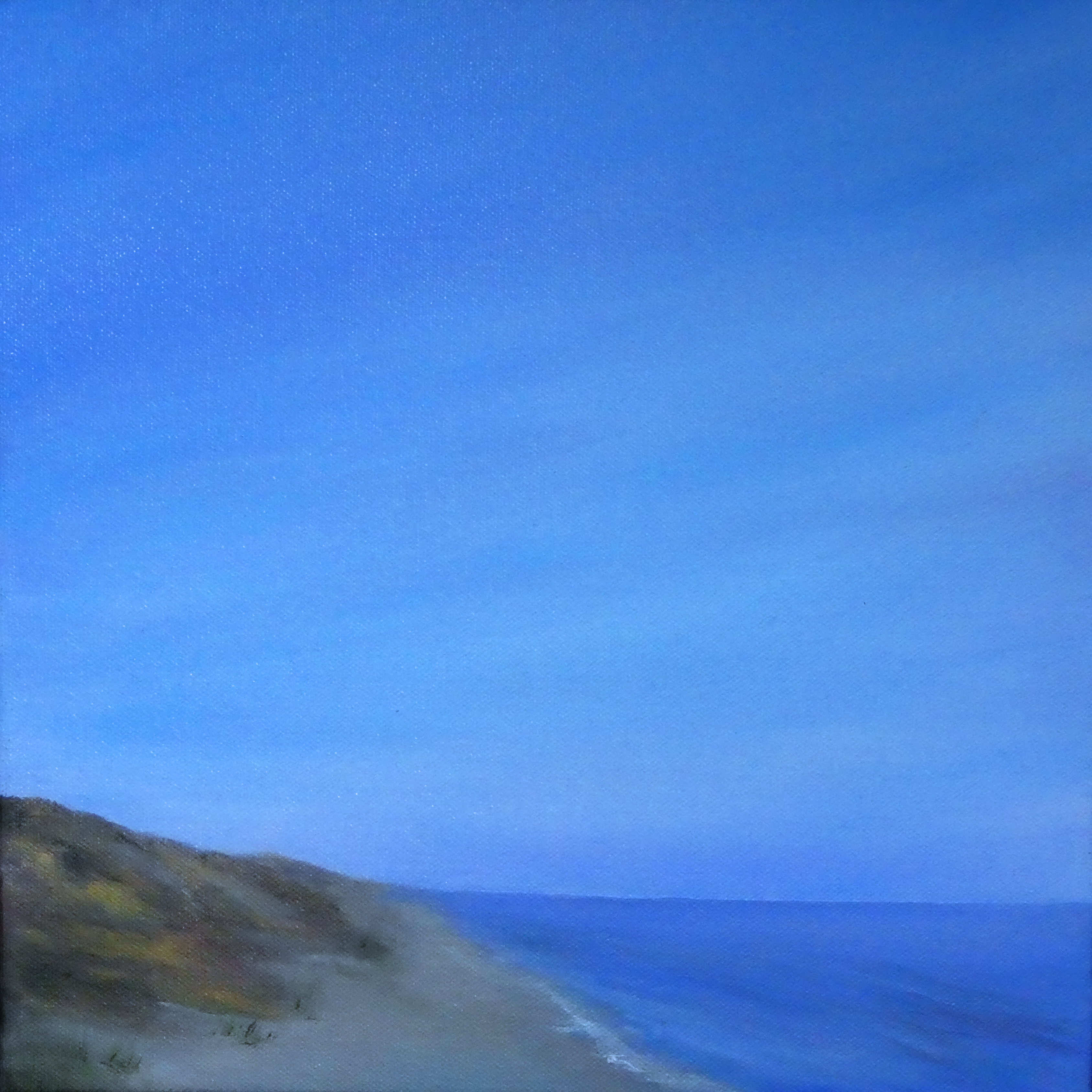 tranquil coastal landscape art with ocean, dunes, changing sky