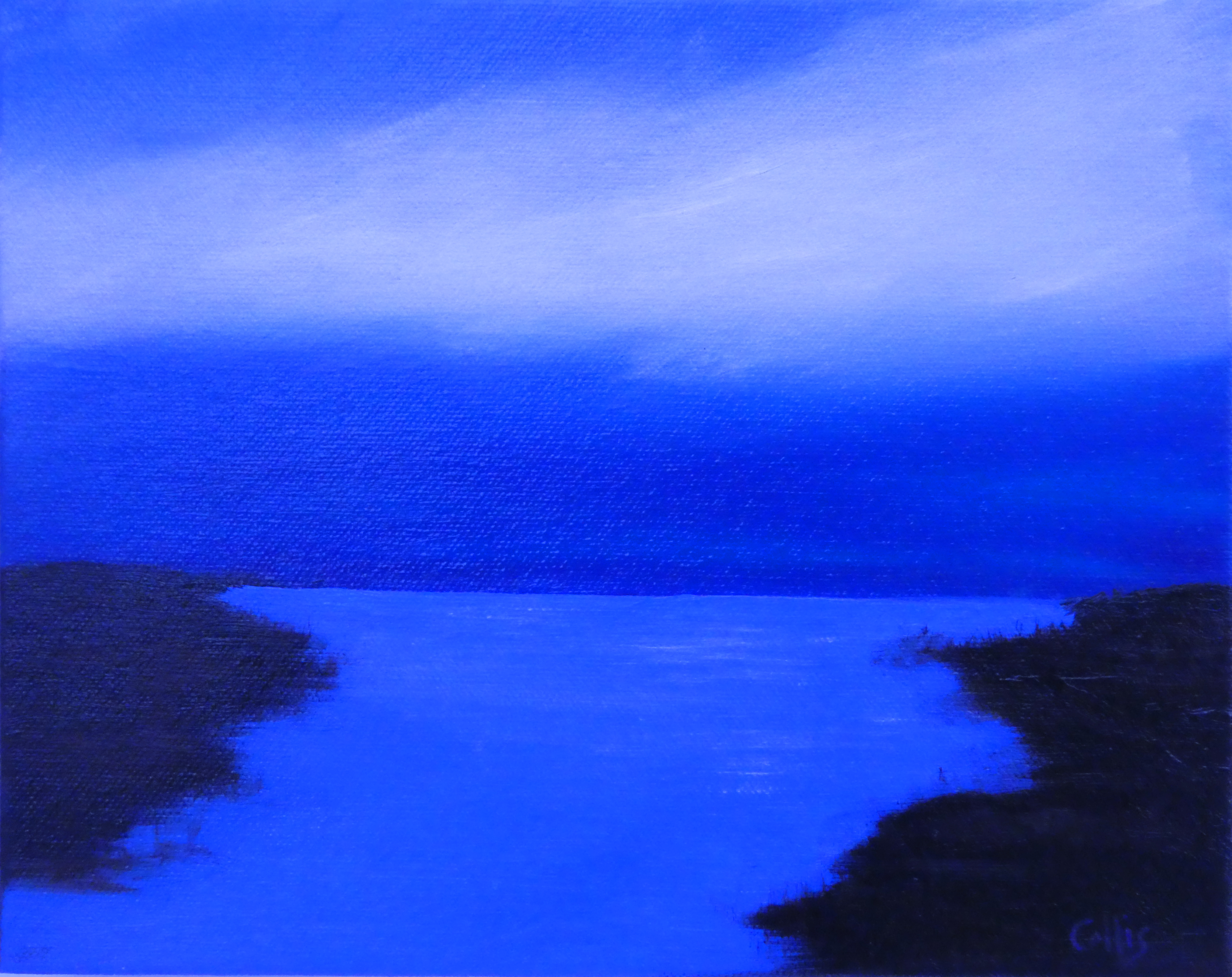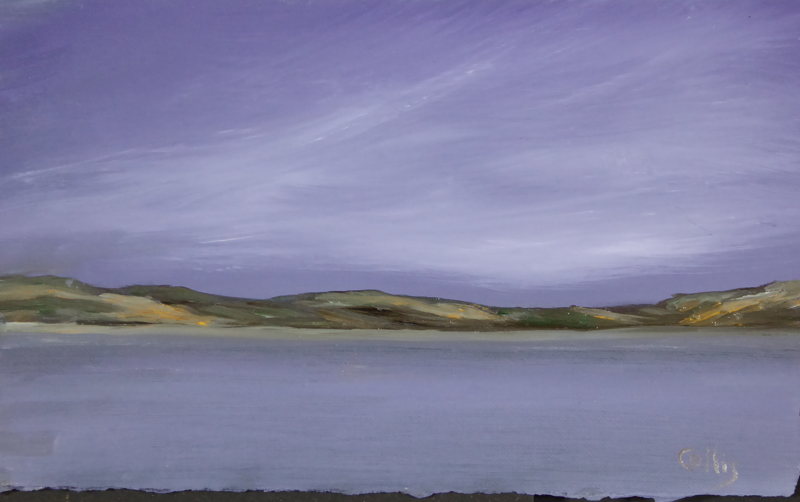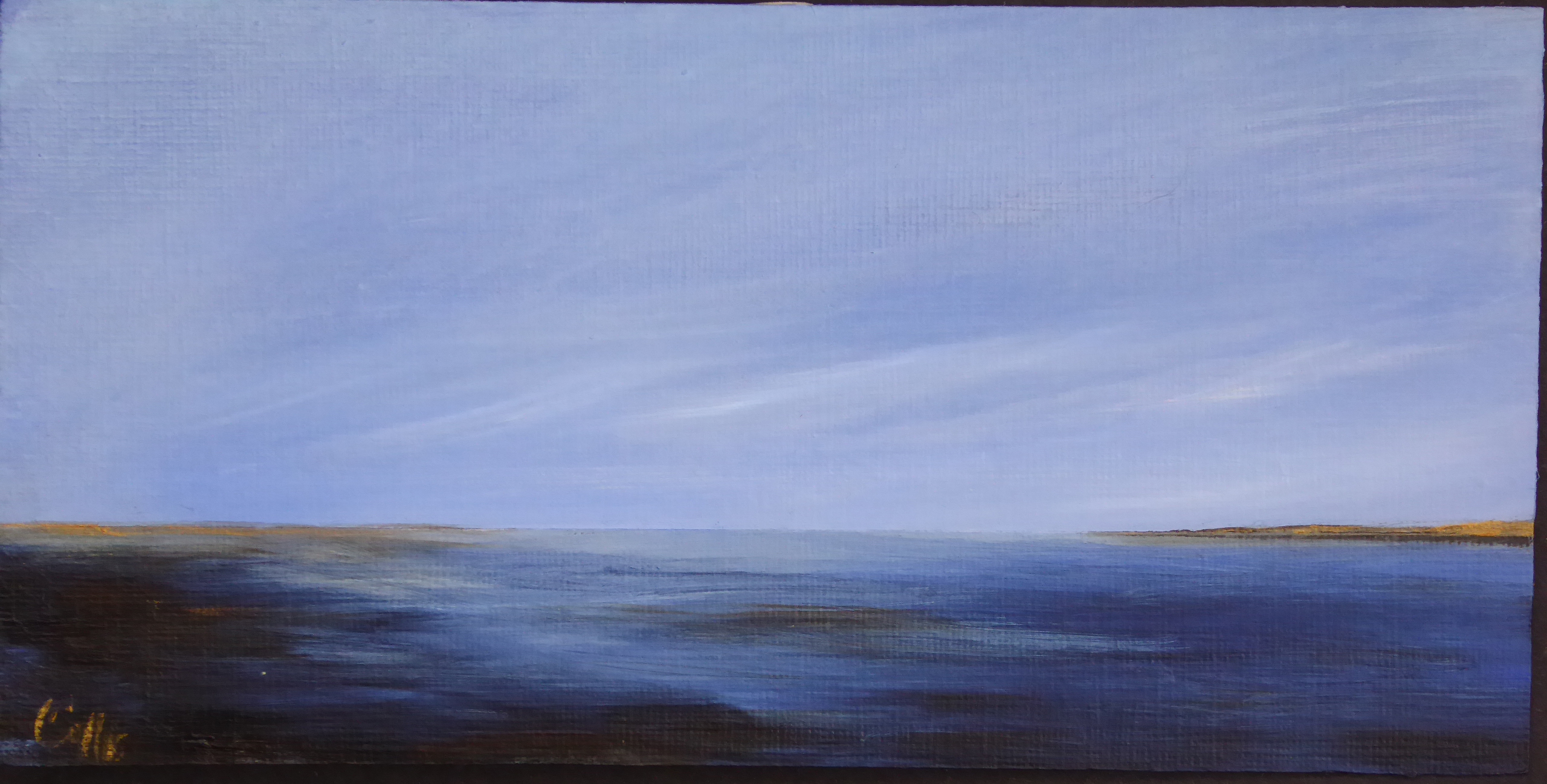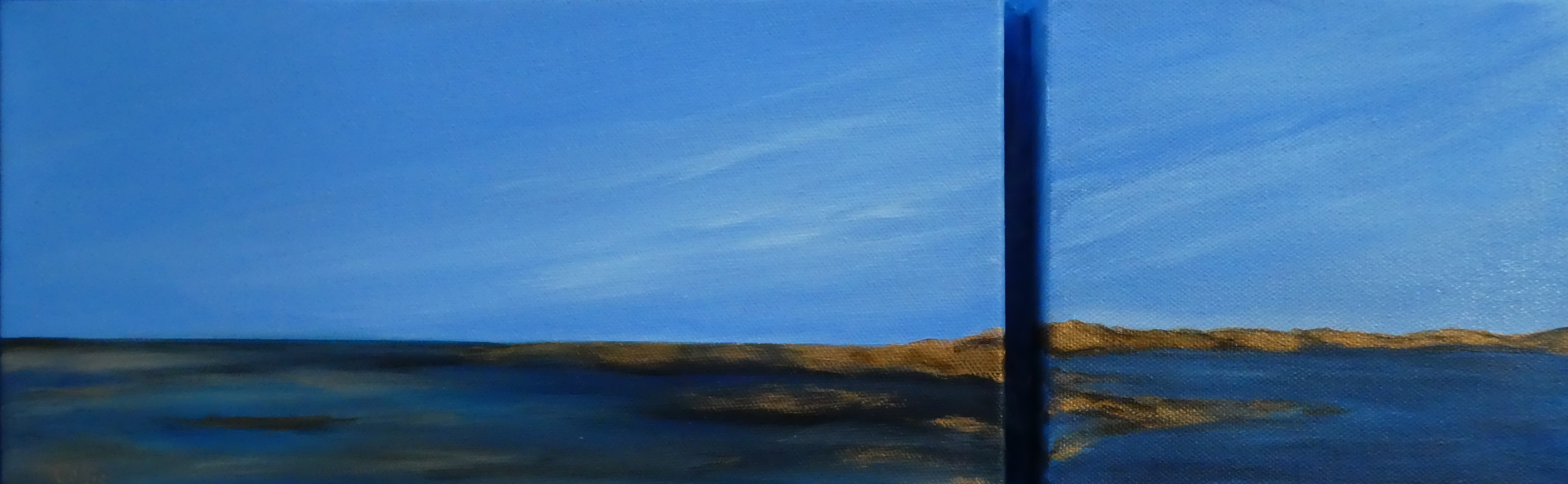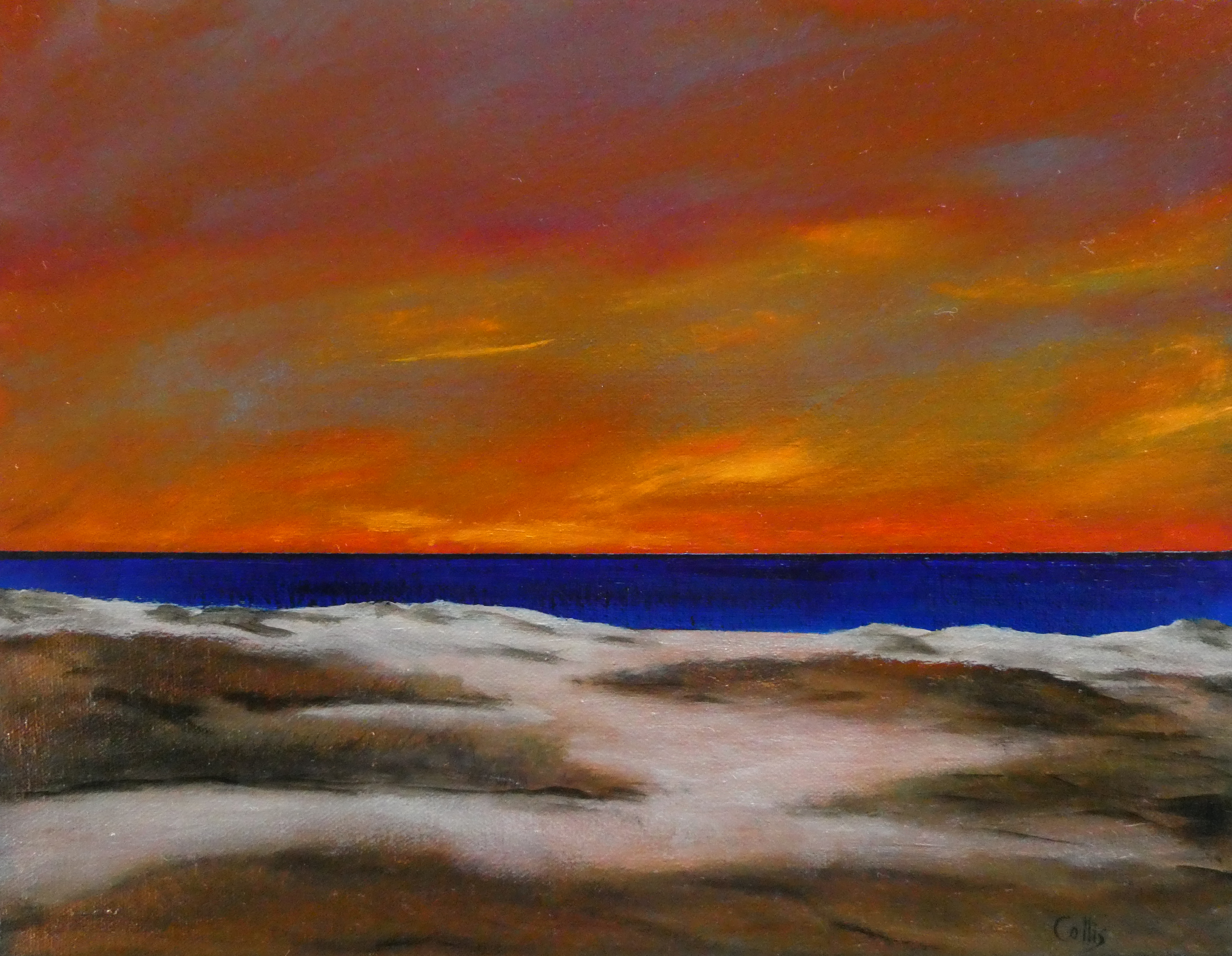 tranquil coastal landscape art with ocean, dunes, changing sky