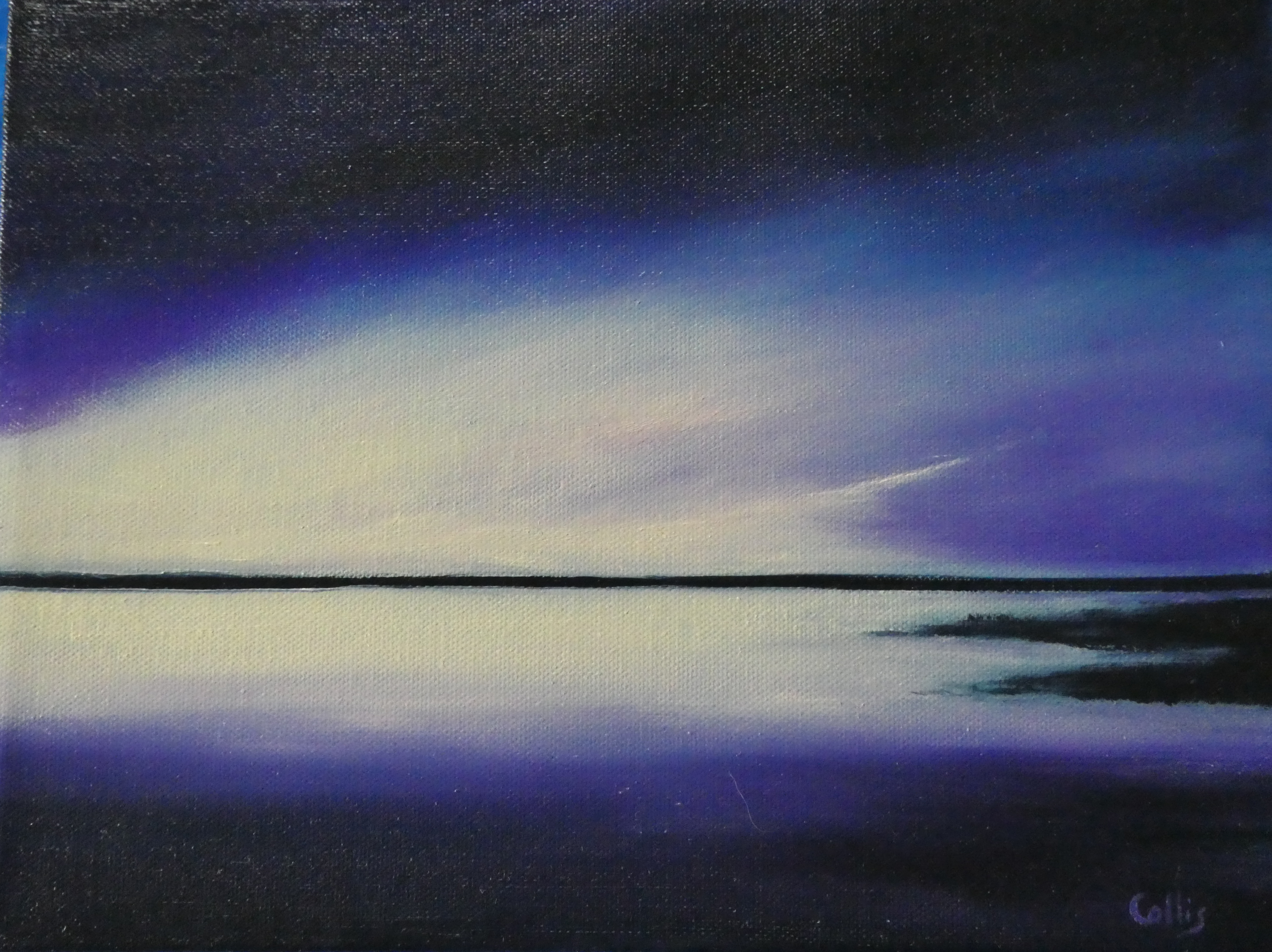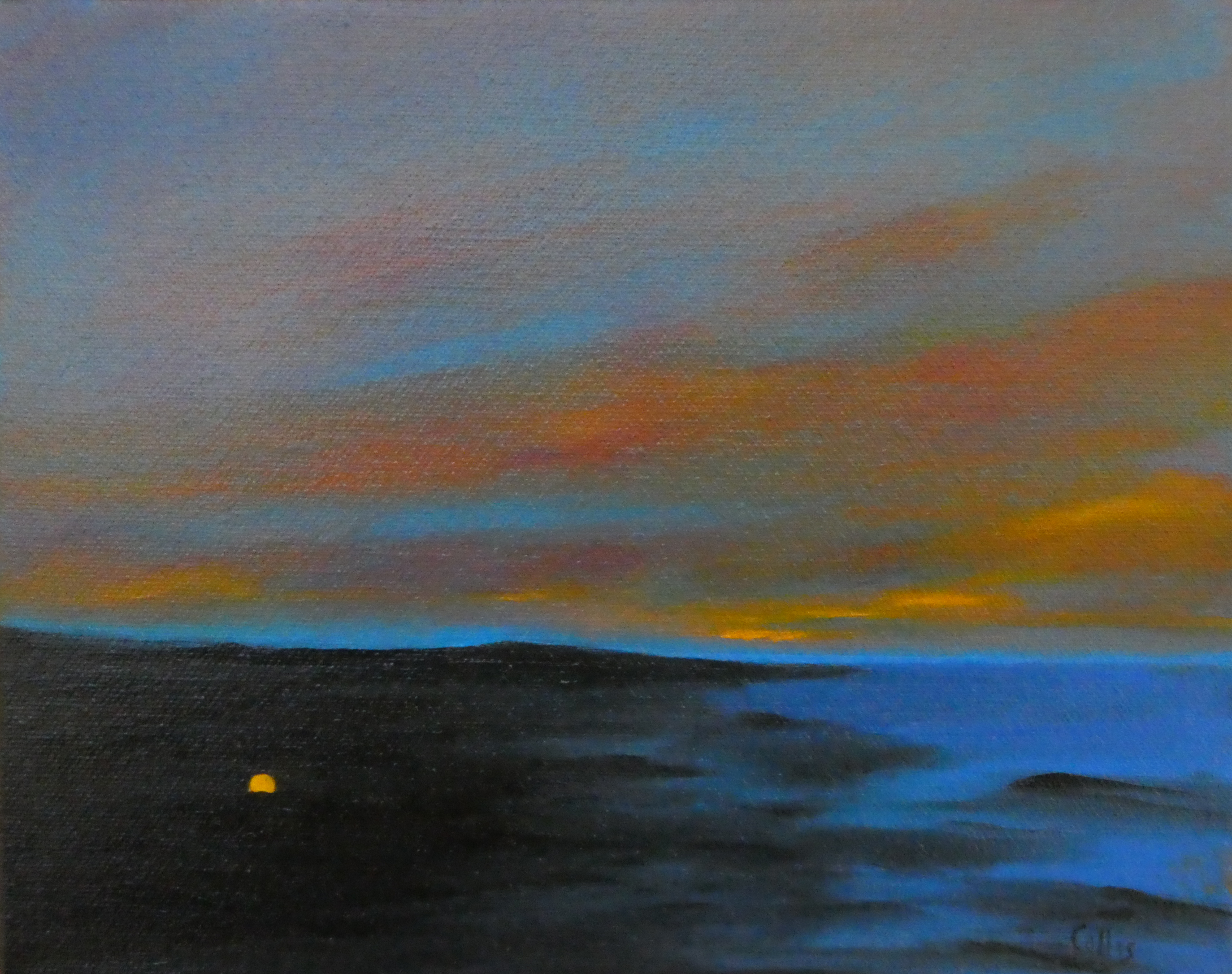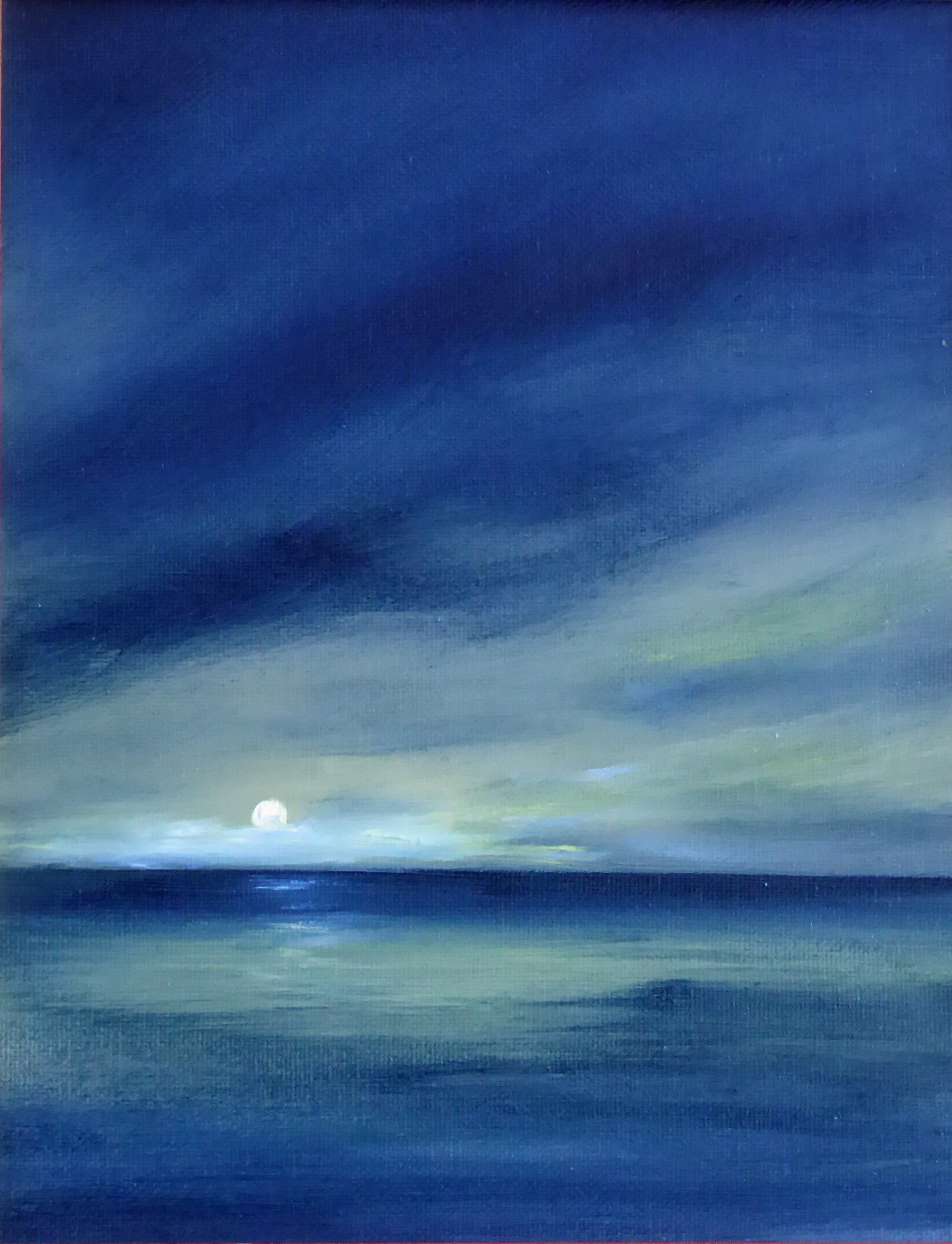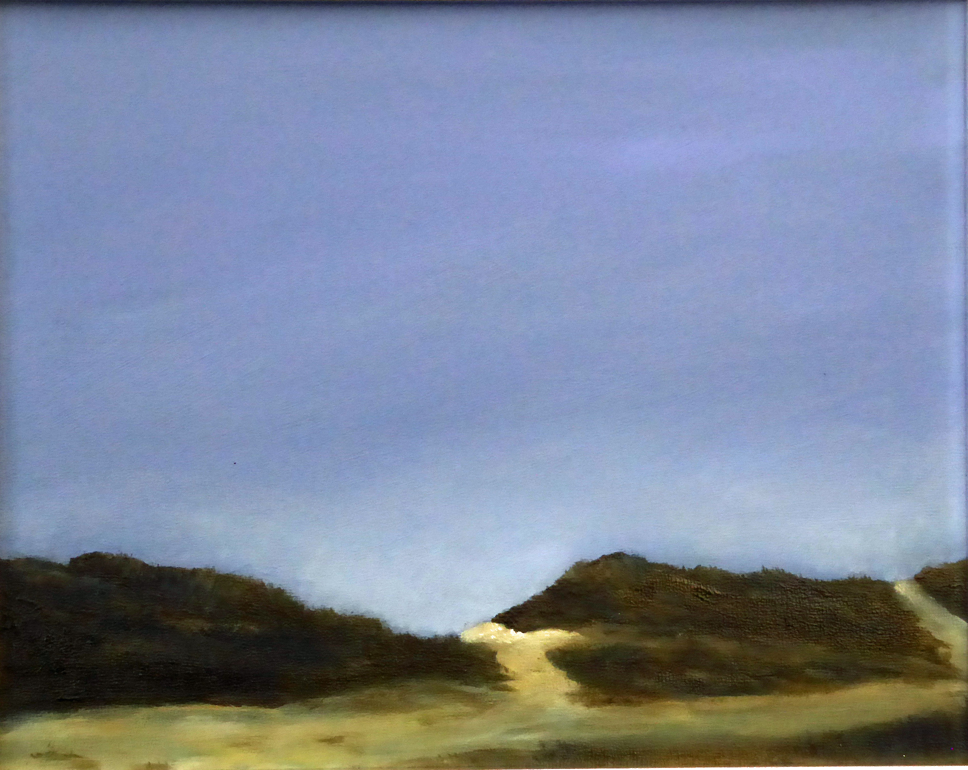 tranquil coastal landscape art with ocean, dunes, changing sky