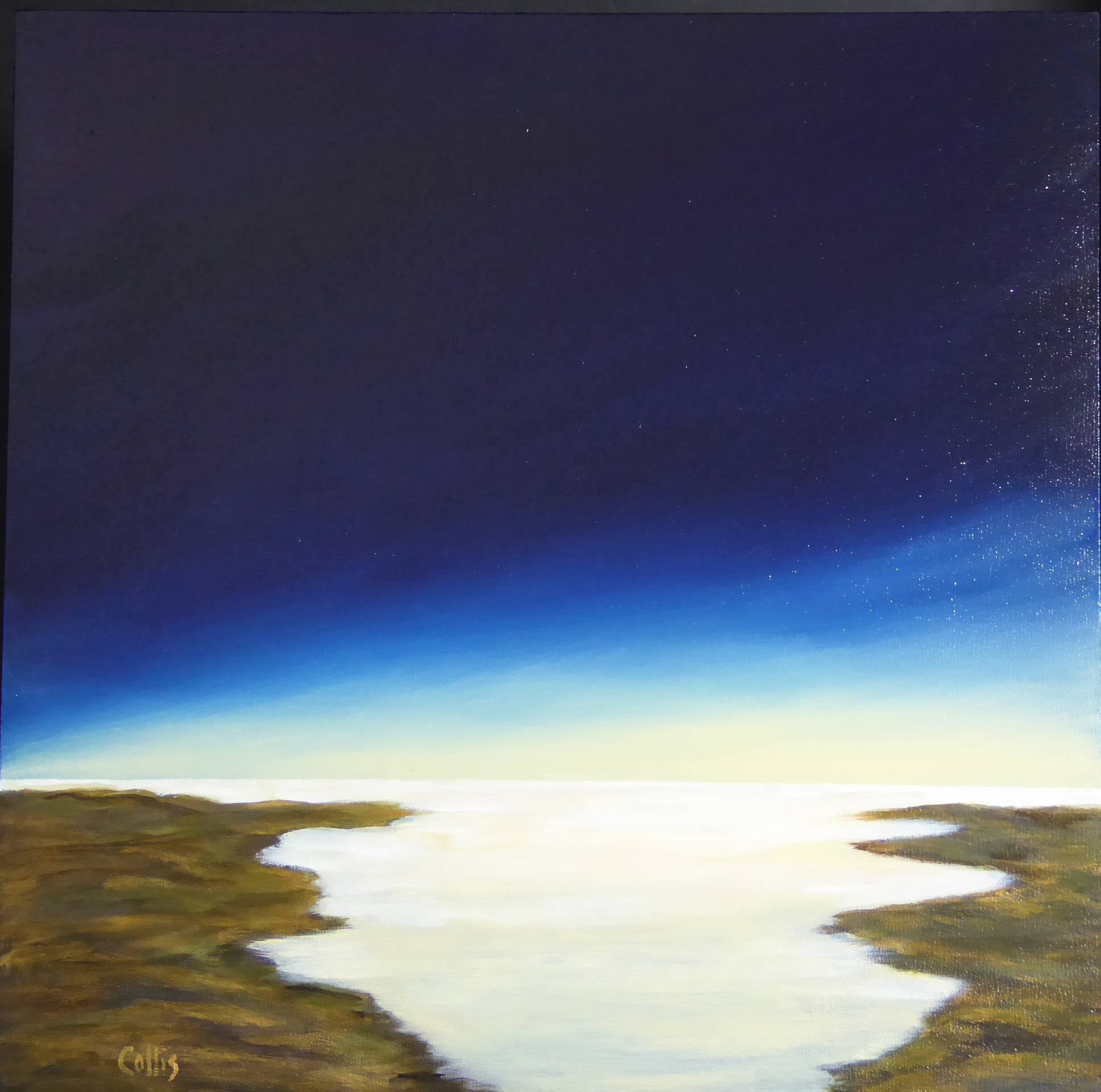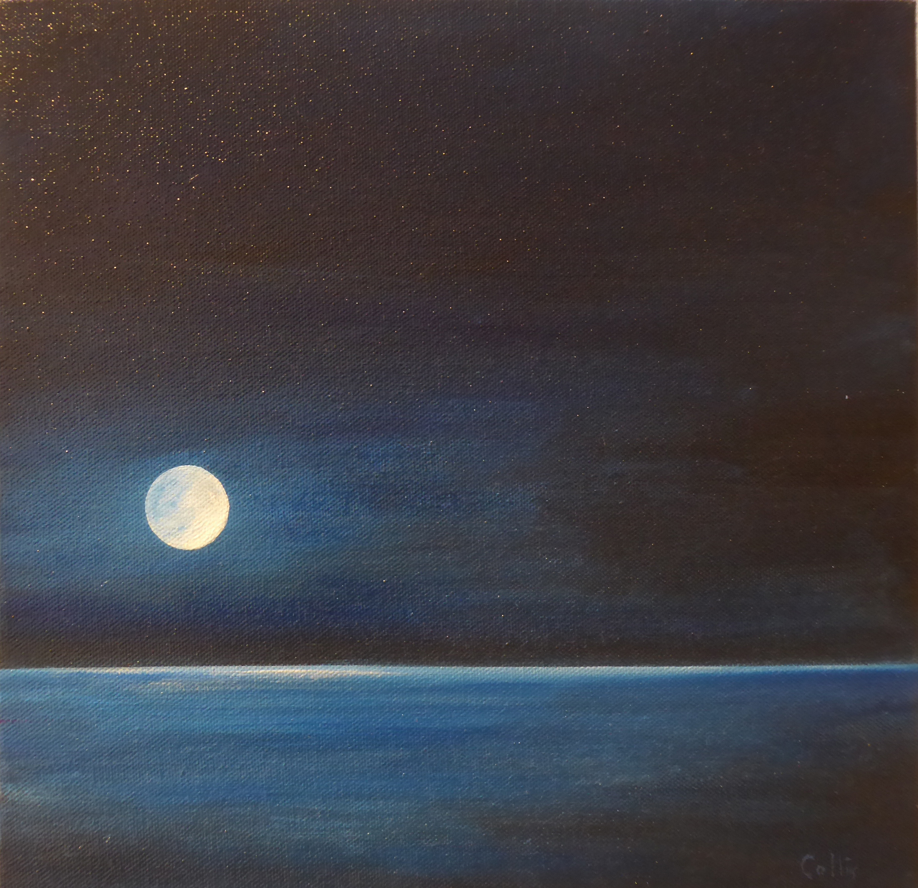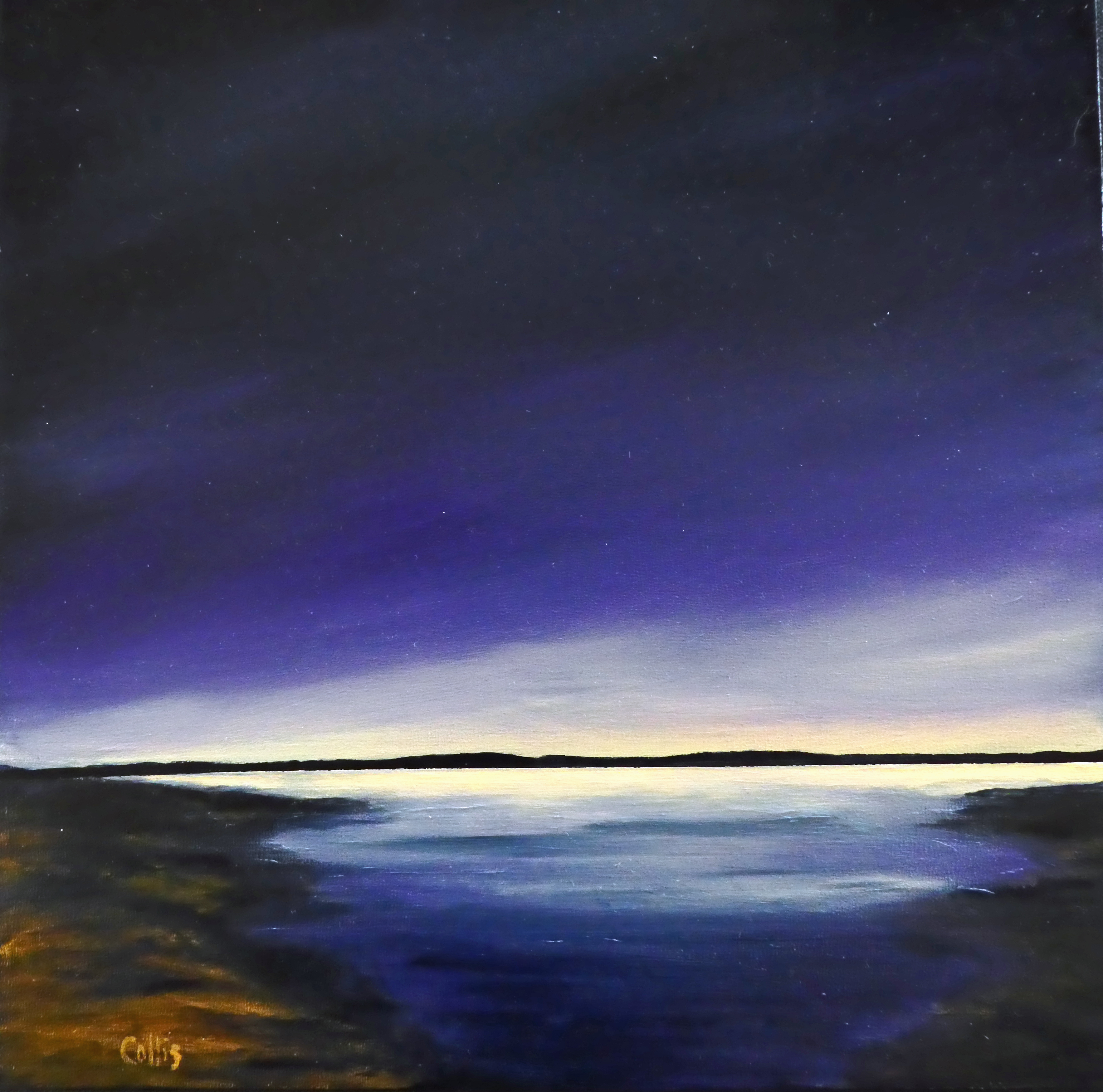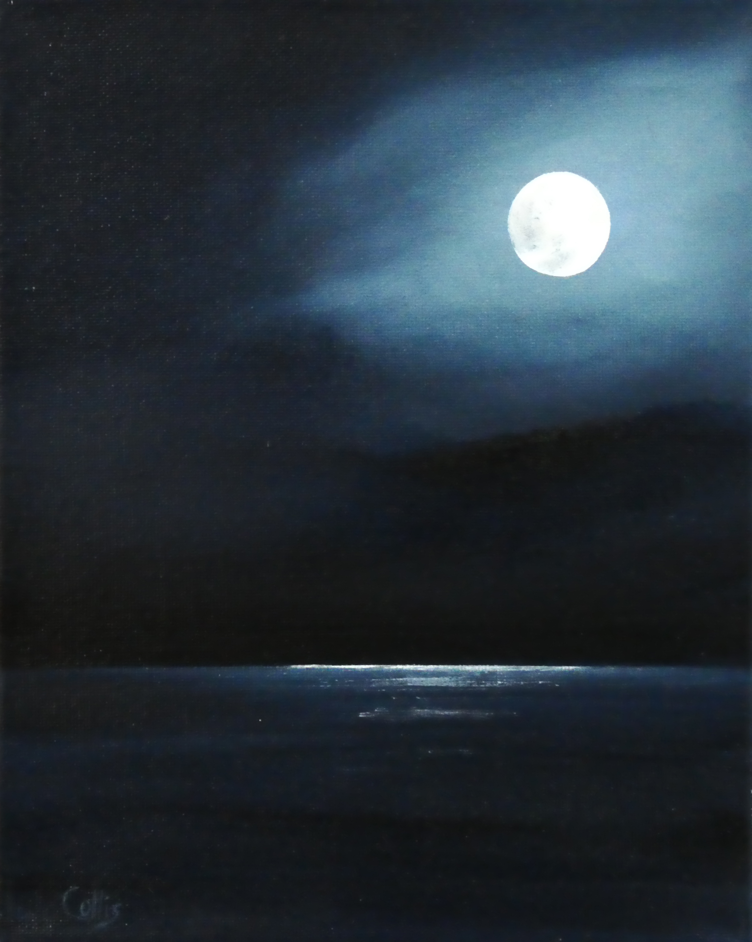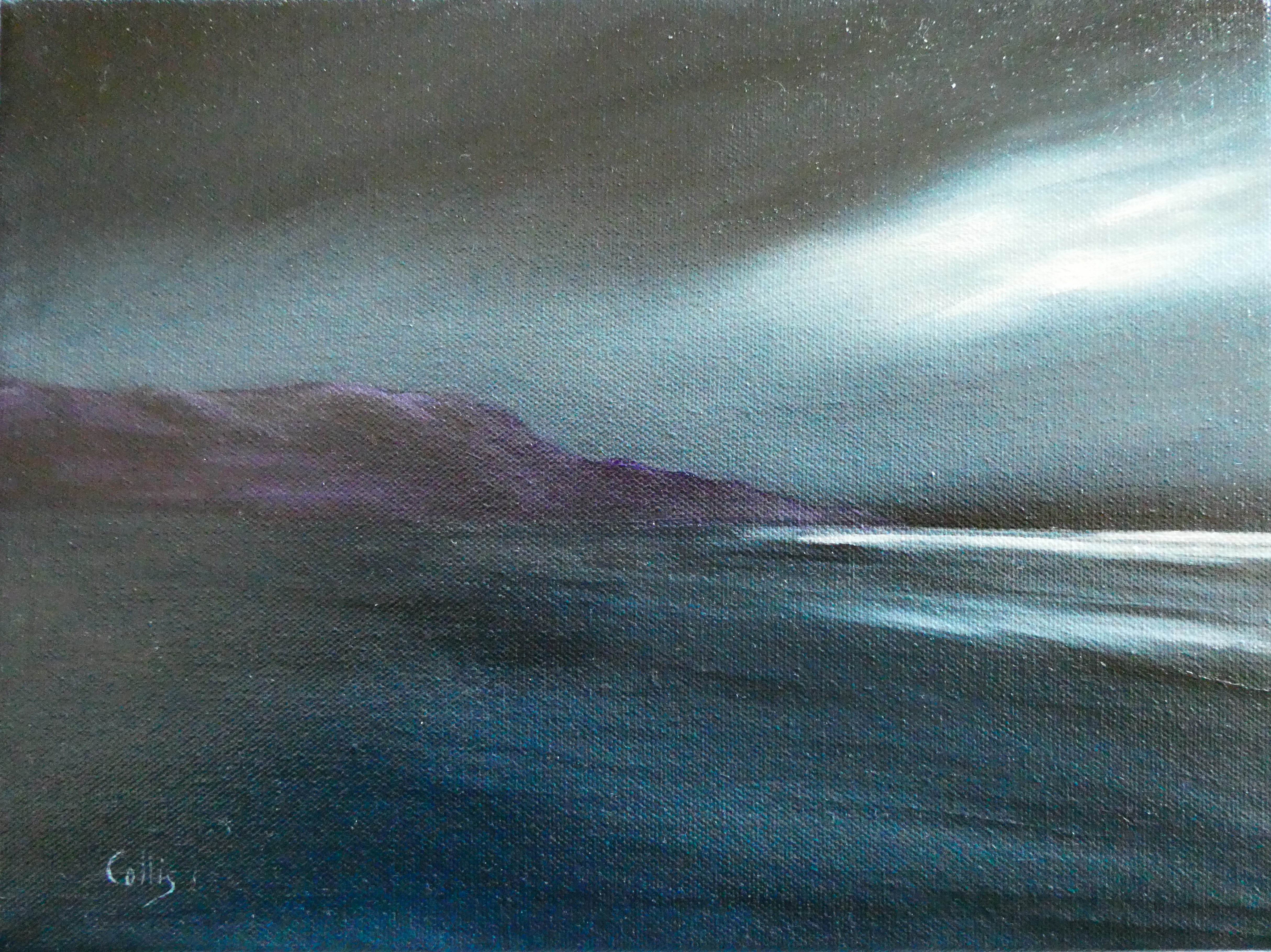 tranquil coastal landscape art with ocean, dunes, changing sky